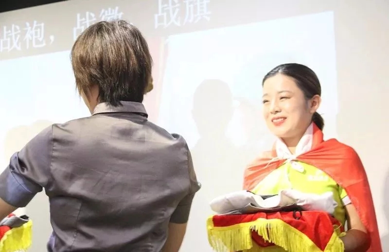 儀式上,行政部Sophie總裁上臺為我們的新家人,授戰(zhàn)袍、戰(zhàn)徽、戰(zhàn)旗,并致歡迎詞。恰逢兒童節(jié),祝愿所有新家人都能夠像孩子一樣,永遠帶著一顆初心,堅持并堅定地往前走,而盛世,也將陪伴著每一位家人成長、成材!
