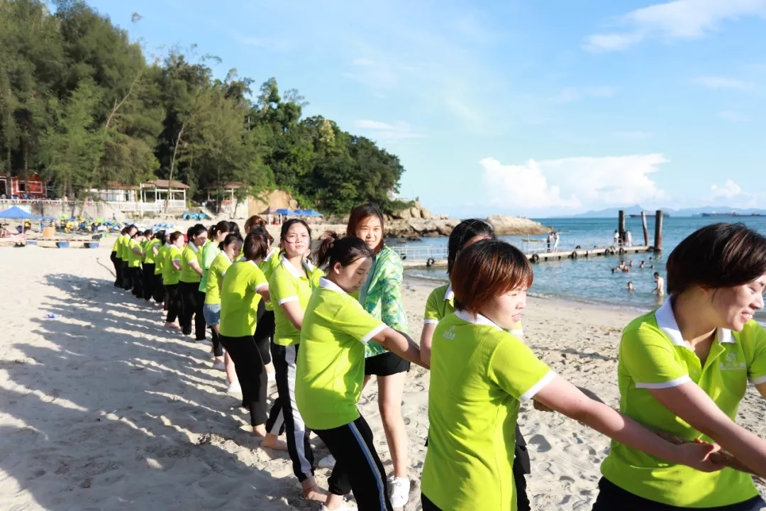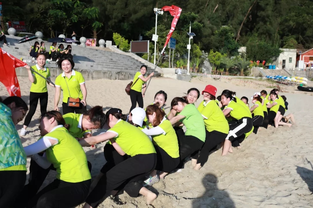藍天白云,水清沙幼,大概是每一個人對于海灘的美好幻想。在這樣一片美麗的沙灘上,游戲活動必不可少,拔河游戲、穿越呼啦圈、沙灘排球紛至沓來。家人們個個使出渾身解數,力爭第一。相信此刻,所有的瑣事已經被拋至九霄云外,剩下的唯有開心了吧!